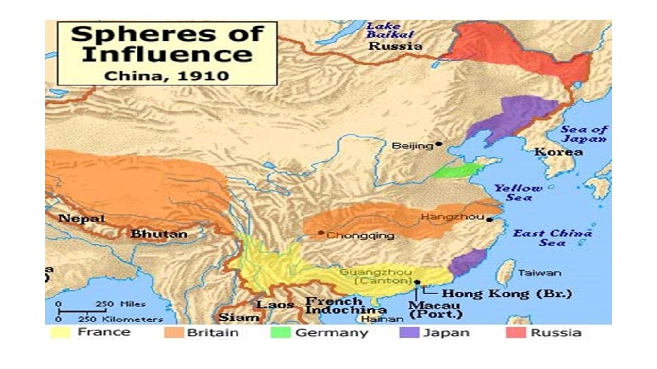 Spheres of Influence • Foreign countries controlled areas of China – lived and traded under their own laws, not China’s • While this led to the creation of markets, it also led to the exploitation of resources.
