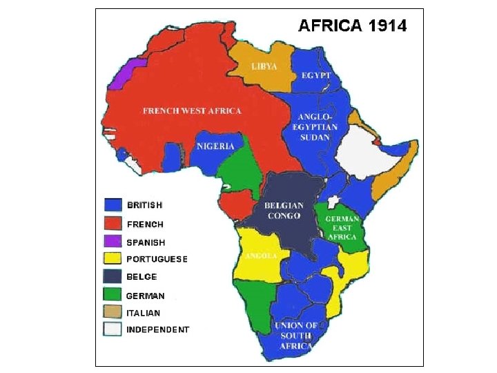 Africa: Berlin Conference • Tensions among the European powers seeking African colonies led to the Berlin West Africa Conference (1884 -1885), during which delegates from 14 European states and the US (no Africans were present) devised the rules for the colonization of Africa • The conference produced an agreement that any European state could establish African colonies after notifying the others of its intentions and occupying previously unclaimed territory