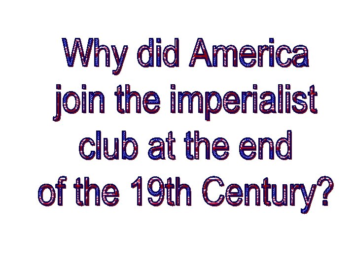 Global Competition v European nations had been establishing colonies for years v Asia (all of Southeast Asia but Thailand) v Africa (all but Liberia and Ethiopia)’ 3 factors fueled American involvement 1. Desire for military strength 2. Thirst for new markets 3. Belief in cultural superiority