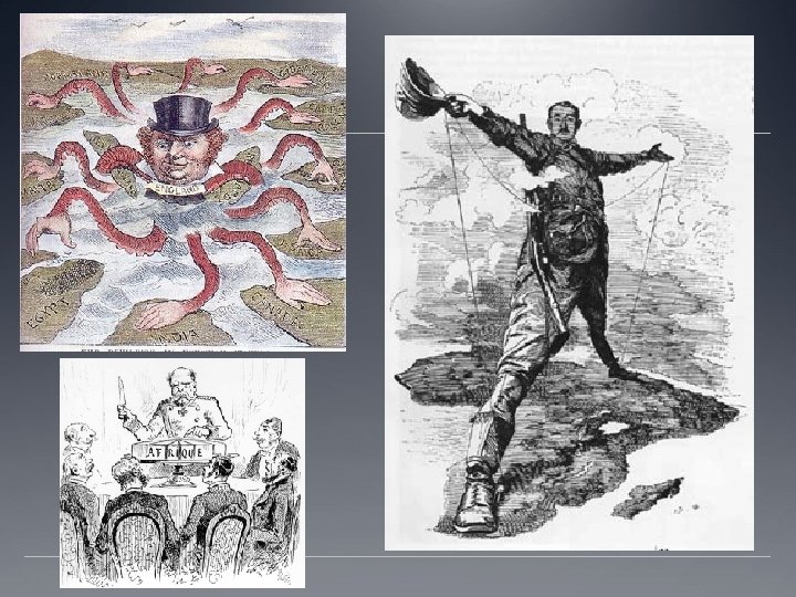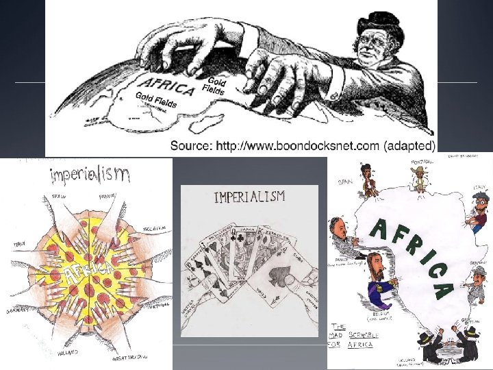 Imperialism Political Cartoon Working individually, develop a political cartoon depicting imperialism in Africa, India, or Southeast Asia Your cartoon can address any of the following topics: division of land among European nations, type of economic system set up, economic products, or the impact of imperialism Items to include: pictures/symbols, key words/phrases/ideas, caption/title Final product should be colored on a sheet of copy paper and should fully represent the ideas discussed in class On the back, write a 7 sentence explanation of your cartoon and how it relates to the topic