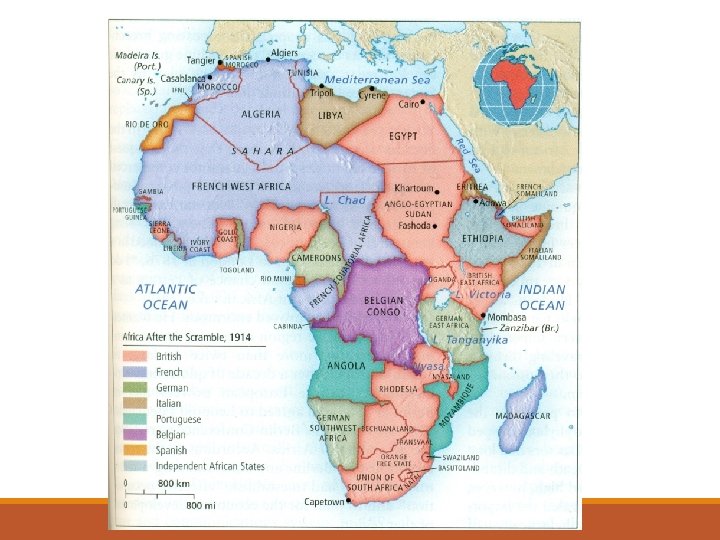 Imperialism: Scramble for Africa • South African Settler Colony • Dutch Cape Colony— 1652 • Boers, Afrikaners • Zulu Empire—founded c. 1816 • Shaka • Napoleonic Wars (1803 -1815) • Cape Seized by British (1806) • Great Trek— 1835 • Suez Canal (1869) • Diamonds (1870’s) • Gold (1880’s) • Zulu Wars— 1879 -1887 • Boer War— 1899 -1902 • Internment camps • Union of South Africa— 1910 • Dominion (1910) • Apartheid (1948 -1991)
