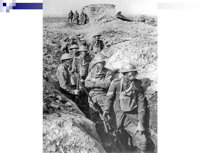 2ª Fase – 1915/16 Guerra de Trincheiras • Terra = guerra lenta e desgastante, disputa por posições estratégicas • Mar = frota naval inglesa X submarinos alemães 1915 → Itália entra no conflito ao lado dos Aliados (promessa de territórios do Império Austro-Húngaro)
