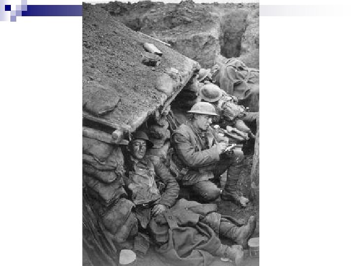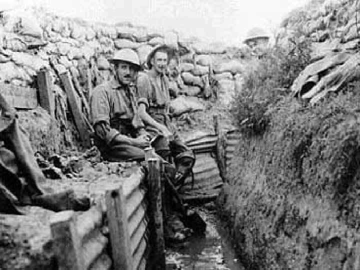 2ª Fase – 1915/16 Guerra de Trincheiras • Terra = guerra lenta e desgastante, disputa por posições estratégicas • Mar = frota naval inglesa X submarinos alemães 1915 → Itália entra no conflito ao lado dos Aliados (promessa de territórios do Império Austro-Húngaro)
