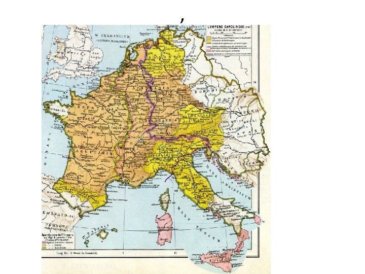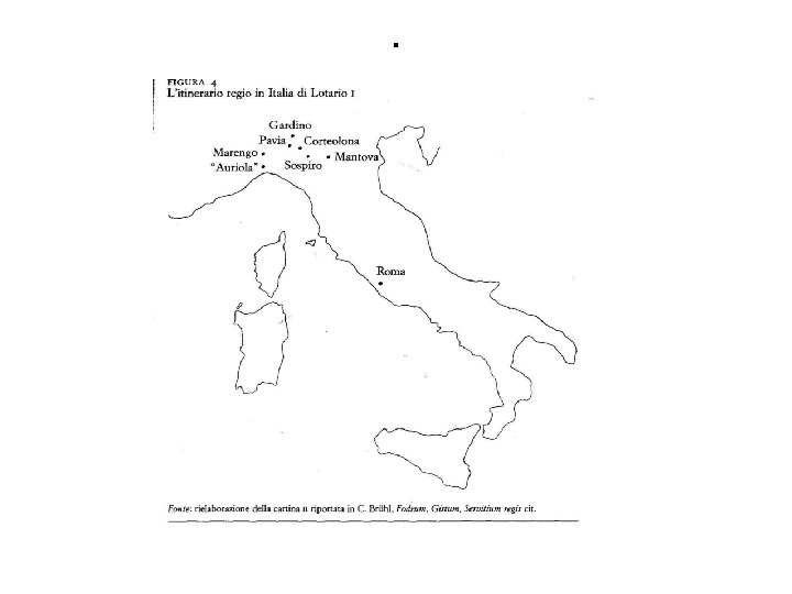 . • Motivi del fallimento: • i franchi in Italia sono quattro gatti • Carattere élitario del loro insediamento. Sino all’ 875 tutti i conti dei quali si abbia notizia sono franchi, o alamanni; quasi tutti i vescovi sono franchi. Si sentono assediati. • Precoce tendenza dei conti alla dinastizzazione delle cariche, e alla progettazione di una politica famigliare, dinastica • Orientamento degli episcopati e dei monasteri a configurare i loro possessi, grazie all’immunità, come a un’isola giurisdizionale all’interno del comitato • Il regnum non ha una politica stabile, ma è solo un potente blocco itinerante, gli spostamenti del quale permettono di tenere a freno le forze centrifughe