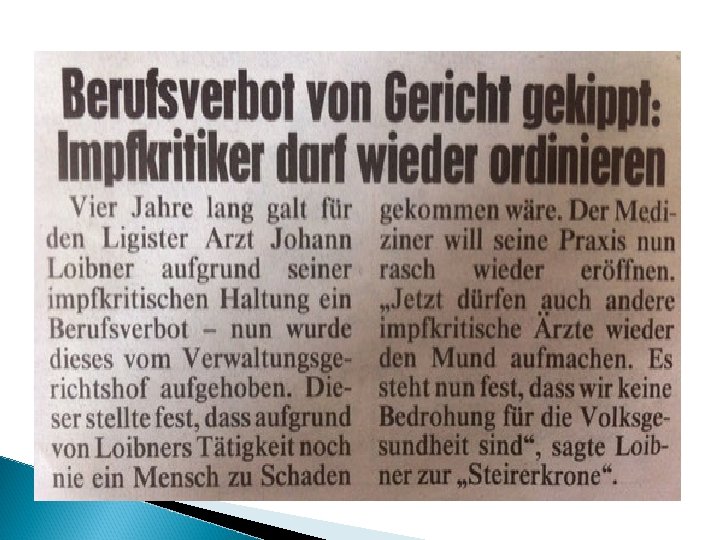 Aus dem sehr lesenswerten, verständlichen Buch Dr. Johann Loibner: "Impfen - das Geschäft mit der Unwissenheit" - einem Arzt der "alten Schule" mit jahrzehntelanger Berufserfahrung und tausenden dankbaren Patienten, die er mit der Erfahrungs- und Naturheilkunde und Ernährungsberatung gesund erhalten hat. Weil er impfkritisch war, wurde er von der Ärztekammer verfolgt, erniedrigt, mit Berufsverbot belegt, obwohl er nie einem Menschen geschadet, beleidigt oder sonstwie geschädigt, sondern immer nur geholfen hat. Die Meinungsfreiheit ist eben zu Ende, sobald ein Mediziner selbständig denkt und Arzt und Mensch wird.