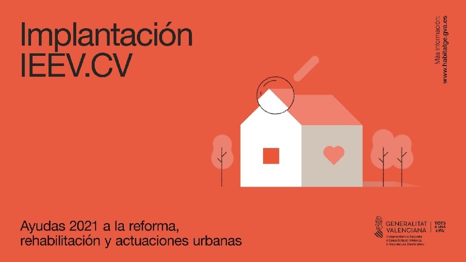 Implantación IEEV. CV Introducción al Informe de Evaluación del Edificio - IEEV. CV Informe que recoge el resultado de la evaluación de un edificio, tras su inspección, en cuanto a su estado de conservación, su accesibilidad y su eficiencia energética. Es fundamental para que las personas propietarias conozcan el estado de su edificio y puedan planificar las obras de rehabilitación y mantenimiento de forma adecuada. Forma parte del deber de conservación de los edificios, tal y como establece la normativa relativa a urbanismo y rehabilitación. Normativa que lo regula: ü Ley 1/2019, de 5 de febrero, de la Generalitat, de modificación de la Ley 5/2014 de Ordenación del Territorio, Urbanismo y Paisaje (LOTUP). Artículo 180 ü Para edificios de viviendas (IEEV. CV) : DECRETO 53/2018, de 27 de abril, del Consell, por el que se regula la realización del informe de evaluación del edificio de uso residencial de vivienda y su Registro autonómico en el ámbito de la Comunitat Valenciana. Ayudas 2021 a la reforma, la rehabilitación y actuaciones urbanas