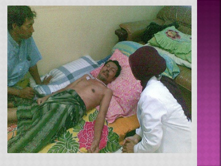 PRINSIP PERAWATAN RUMAH Ø Lanjutan pelayanan di rumah sakit Ø Menekankan kemandirian Ø Dilakukan sesuai kebutuhan pasien Ø Program terencana, profesional, ada tujuan, dapat dievaluasi Ø Diselenggarakan oleh RS / Puskesmas (tim) bisa dipertanggungjawabkan Ø Tidak semua kasus bisa dilakukan rawat rumah Ø Realistis, manusiawi dan biaya relatif murah untuk pasien terminal