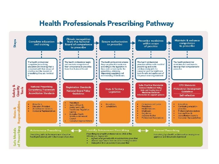 What has ANZPAC done to integrate prescribing competencies into the entry-level graduate standards? • Formal comparison to NPS Competencies – Very high level comparability – Small number of differences noted to help guide revision to entry-level competency standard