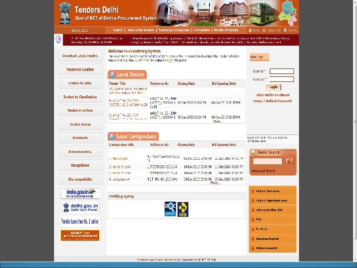Vendor Registration Module • Vendor Registration Module exclusively developed for Delhi Govt, through which only the Registered Vendors would be allowed to participate in the e-tendering process. • Registration of Vendor is valid for a period of one year • The Tender Fee is exempted in all Tenders of Govt of NCT of Delhi. • The Vendor Registration module has been integrated with SBI e-payment gateway • Number of Active Bidders/ Vendors : 5, 475