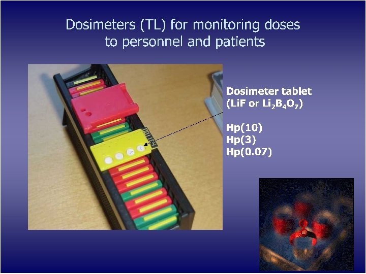 • Dose assessment Regular personal dosimetry Dose history Internal dosimetry