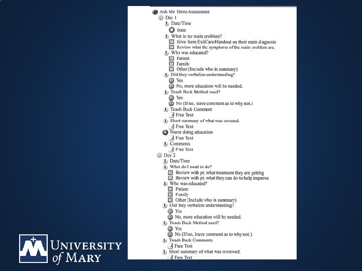 Unintended Consequences • Desire to implement Ask Me 3 on outpatient side • Patient education need for comfort care patients/families • Compliance rate lower on observation patients • Staff nurse to continue with her own master’s project