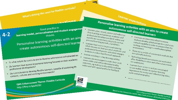 STAGE 2: ENHANCE practice Four dimensions of curriculum flexibility STAGE 1: REFLECT on changing drivers and needs External engagement and partnerships Key areas of focus • Learner expectations • Key Government and sector drivers • Key institutional drivers, goals and priorities • Globalisation and internationalisation • Employer and employer body needs and expectations • Changes in what we teach • Changes in how we teach • Retention Anytime, anywhere learning Key areas of focus • Engaging employers • Learner flexible access and other stakeholders to technologies, to customise curricula training and tutors to employer and • Using technologyemployee needs and enhanced learning contexts and to approaches to influence currency and underpin new flexible relevancy of curricula. pedagogic approaches. • Aligning curricula with. changing sector / • Learner skills and professional needs and support in flexible and contexts. technology-enhanced learning Entry, transition, progression and exit Learning model, personalisation and learner engagement Key areas of focus • Flexible learning pathways and timings e. g. entry, progression, exit. • Options for negotiated curricula and assessment. • Flexible means of accessing guidance and support throughout the learner journey including development of graduate attributes and employability • Developing flexible pedagogies using e. g. social and open learning and assessment for learning approaches. • Personalising learning to develop selfdirected learners. • Using blended learning approaches on/off campus. • Learner engagement with flexible curricula design/delivery.