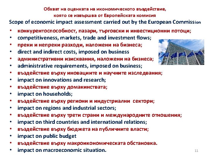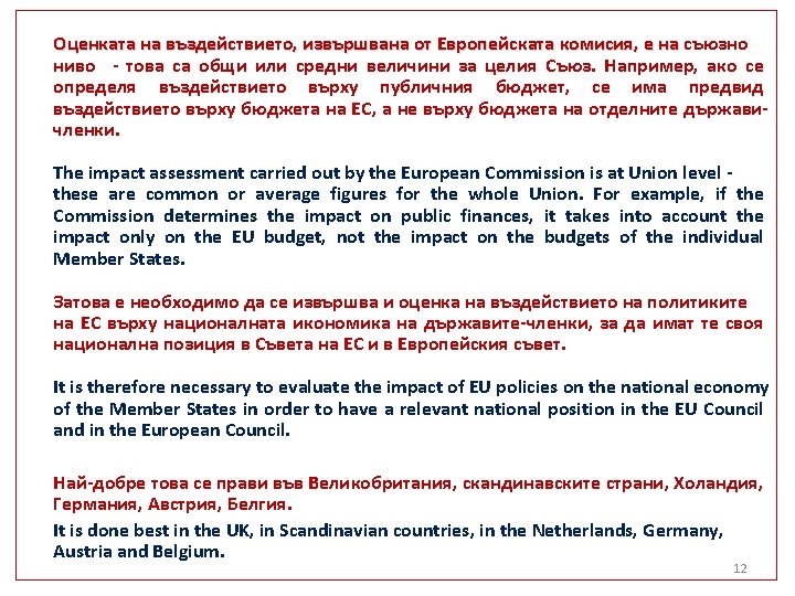 Важни аспекти Important aspects 1. Фази в интеграционния процес 1. Phases in the integration process 2. Съюзна и национална компетенция 2. Union and national competency Spillover effect… 3. Субсидиарност и пропорционалност 3. Subsidiarity and proportionality 4. Оценка на икономическото въздействие 4. Economic Impact assessment Democracy deficit?