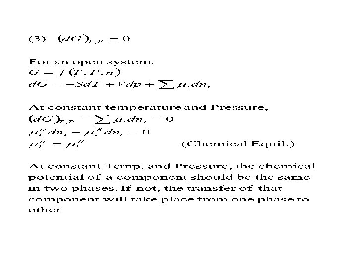 Important Thermodynamic equations Conditions for equilibrium between Phases