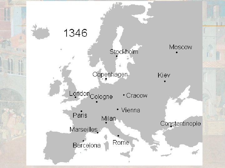 BLACK DEATH From 1347 – 1351 a deadly disease spread through Europe The disease was called the Great Mortality or Black Death The disease came from Asia and spread quickly because of poor sanitation The plague killed between 1/3 to ½ the population of Europe