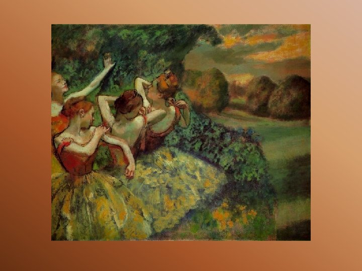 Edgaras Dega yra taip pat impresionistas. Jo tapybos temos, motyvai, bruožai urbanistiniai peizažai, teatras, atsitiktinė paveikslo kompozicija, judesio fiksavimas, raiteliai.