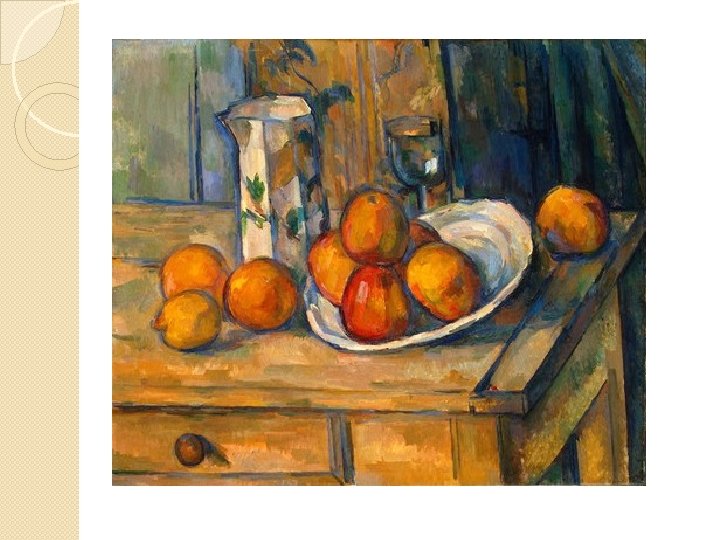Paul Cèzanne �Un pittore francese che voleva vedere il mondo come una cosa obiettiva; �Gli impressionisti vedevano il mondo come una cosa subiettiva, cioè, sotto l’influenza della luce e dei loro sensi; �Cèzanne voleva rimuovere questa scintillante realtà e trovare una realtà immodificabile, che esiste sotto la scintillante realtà. �Cézanne è famoso per il suo stile a macchia: dipinse a chiazze di colore, come se ogni pennellata fosse una tessera di mosaico, che acquista un senso solo quando è unita alle altre nel ricomporre un oggetto: usa cioè il colore per “costruire” le forme e per questo ogni pennellata è densa e stesa con energia.