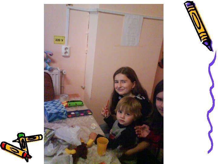 • ACŢIUNI: • Vizitarea celor două unităţi partenere: şcoală şi grădiniţă; • Pregătirea programelor artistice pentru prezentare cu diferite ocazii (8 Martie ); • Audierea de către preşcolari şi şcolari a unor poveşti şi colinde de pe CD-uri; • Vizionarea unor filme, slide-show-uri (utilizarea instruirii asistate de calculator); • Desfăşurarea unor activităţi artistice şi plastice împreună; • Activităţi de socializare • Confecţionarea de felicitări, ornamente de Crăciun; • Realizarea unor expoziţii cu lucrările realizate împreună; • Desfăşurarea unor jocuri tematice;