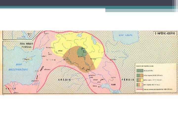 História da Assíria • A Assíria teve o seu apogeu entre 705 a 626 a. C. Período que abrange os reinados de Senaqueribe, Esar-Hadom e Assurbanipal.