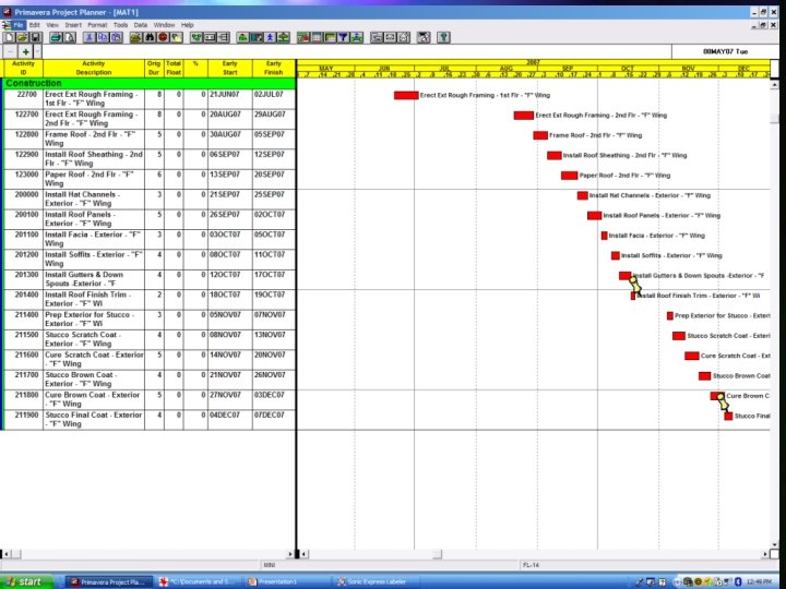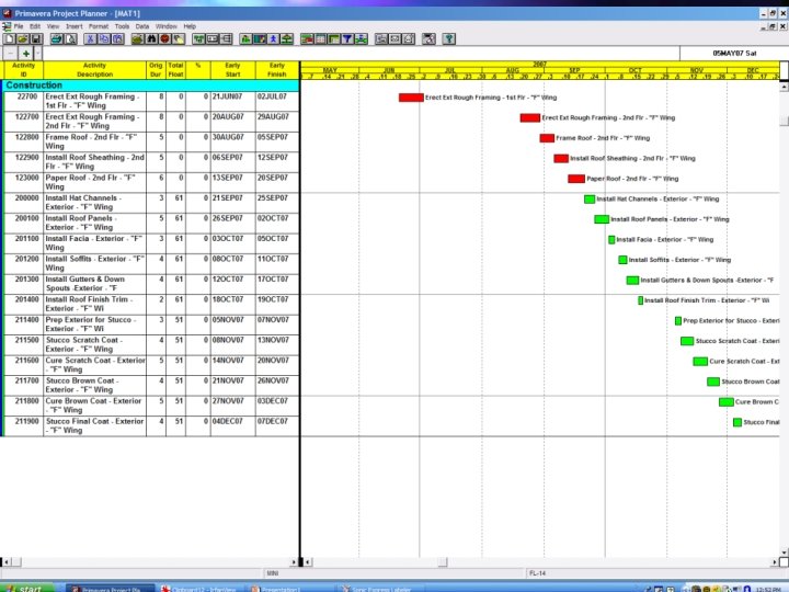 Baseline Review n Do Not Allow Compound Activities ØActivities Containing Multiple Trades n Require All Submittals are Included n Check Excessive Float ØFloat Value > 40% of Project Duration n Don’t Accept Early Completion Schedule ØCan Set Up Early Completion Delay Claim ØAdd Project Float Activity