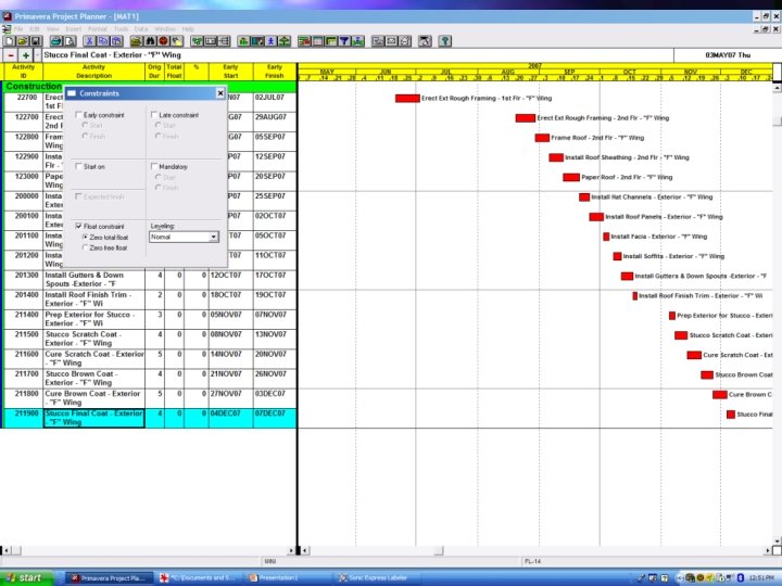 Float vs. Lag n A Logic Tie Lag is Not Float ØLags Can be Used to Sequester Float n Who Owns the Float? ØNormally Project Owns the Float ØYou Can Allow for Owner to Retain Float for Their Time Savings, but This Must be In the Contract.
