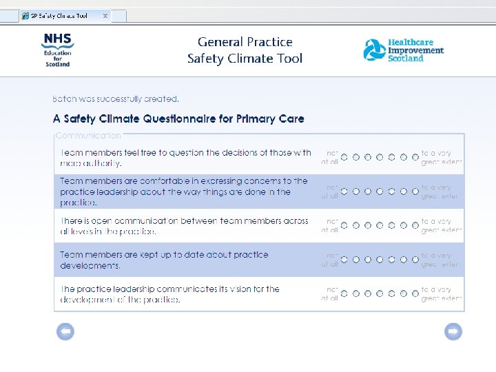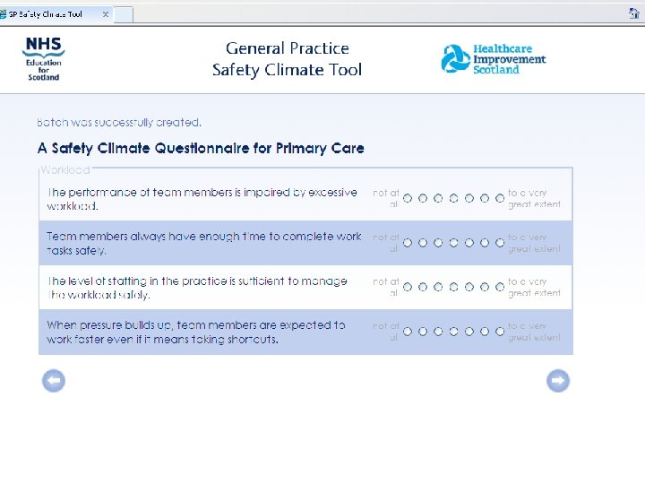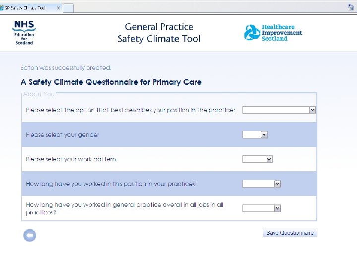 Safety Climate Survey • • • On line Practice centred Measurement Diagnosis Catalyst for change