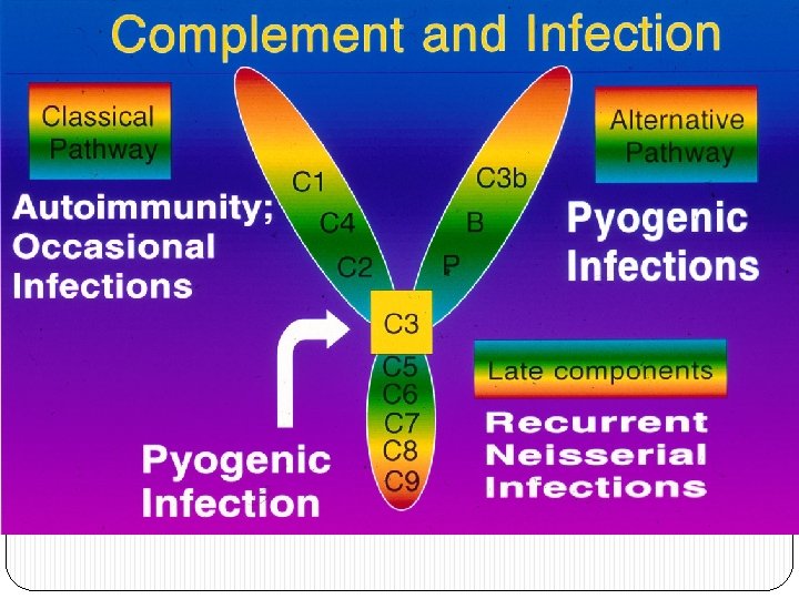 5. Defecte ale sistemului complement • Afecteaza Imunitatea innascuta & adaptiva. • Example: ü Imunodeficienta C 1, 2, 3, …, 9 : Infectii Recurente. Defecte ale producerii MAC prin mecanismul clasic de activare: Sindrom lupus like. ü Edemul Angioneurotic Ereditar: absenta sau functia redusa a C 1 inhibitor (creste C 2 a, scade C 4). Acumularea de fluid in the tesuturi si cai resp (risc vital).