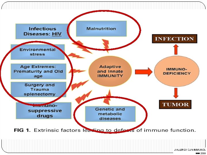 GENERALITATI � Deficitul imun apare si se instaleaza atunci cand una sau mai multe componente ale sistemului imun prezinta anomalii, fie morfologice, fie functionale � Primele observatii au fost facute pe persoanele suferinde de malnutritie, in tarile subdezvoltate – aport proteic si caloric precar � Mai rar au aparut stari de imunodeficienta in care nu puteau fi incriminate conditiile socioeconomice