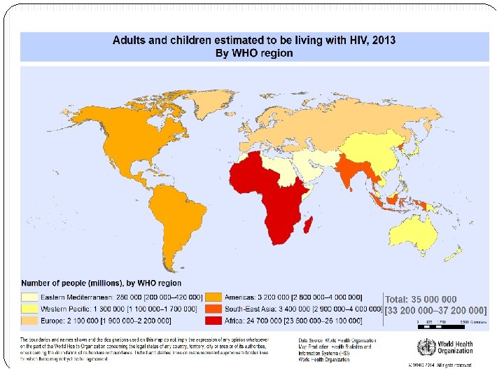 N Virusul Imunodeficientei Umane (HIV): v Infectia HIV la om este considerata pandemica de OMS. v Totalul celor infectati cu HIV in 2013 ≈ 35 million. No. de decese in 2013 ≈ 1. 5 million.