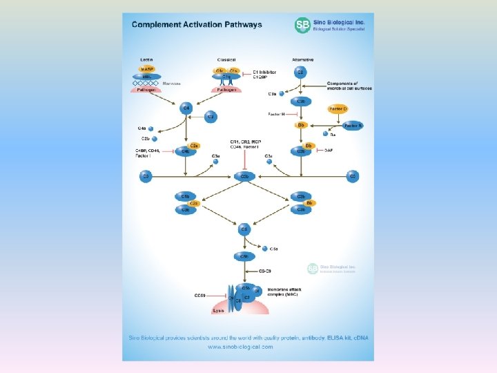 Regulace komplementu § factor S (vitronectin) – inhibuje komplex C 5 b. C 6 § CD 59 (protectin) – brání polymeraci C 9 → vytvoření lytického póru § inaktivátor anafylatoxinu (CPN) - inaktivuje anafylatoxiny (C 3 a, C 4 a, C 5 a)