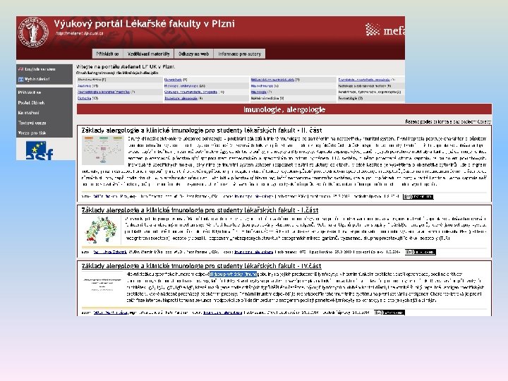 Doporučená literatura n Liška, M. ; Ochotná, J. ; Panzner, P. Základy alergologie a klinické imunologie pro studenty lékařských fakult –I. - VI. část [elektronická skripta]. [cit. 2013 -10 -01]. Po registraci a přihlášení je plný text dostupný z: http: //mefanet. lfp. cuni. cz