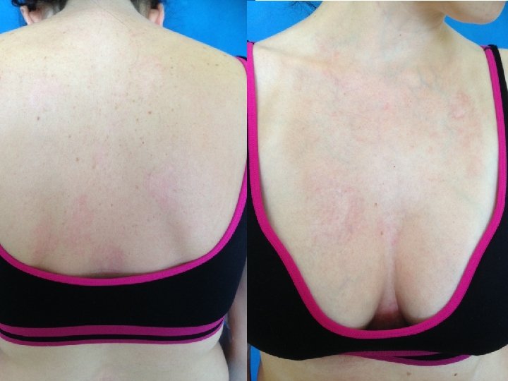 PACIENT 3 • žena, r. 1982 RA: matka zomrela 36 - ročná na SM, otec zomrel 42 - ročný tragicky, sestra zdravá, dcéra 3 ročná zdravá, kožné ani alergické ochorenia v rodine neudáva. OA: prekonala bežné detské ochorenia, od mladosti dyspeptické ťažkosti, choroba gastroezofag. refluxu bez ezofagitídy, anemická, inak doteraz vážnejšie úrazy, operácie neudáva. LA: sine. AA: PNC, kobalt, NA: negat. SA: po materskej, t. č. na PN, pracovala predtým ako kontrolórka kvality, žije v RD s manželom a dcérou. EA: negat. GA: P: 1, Upt: 0, Ab: 0, menarché od 13 tich, CA: negat