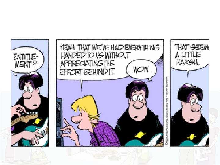 IF THE SOURCE (THE PARENTS) GIVES WITHOUT BOUNDARIES, CHILDREN: • FEEL “ENTITLED” • BECOME SELF-CENTERED AND DEMANDING • UNGRATEFULNESS BECOMES A CHARACTER PATTERN • WILL NOT KNOW HOW TO SAY “NO” OR SET LIMITS ON THEMSELVES