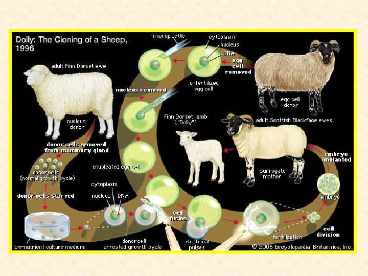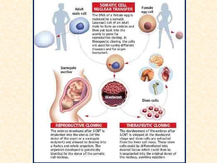 • Cloning is done by replacing the nucleus of an egg with the nucleus of another nonreproductive cell. The two fuse together and the egg is activated by a jolt of