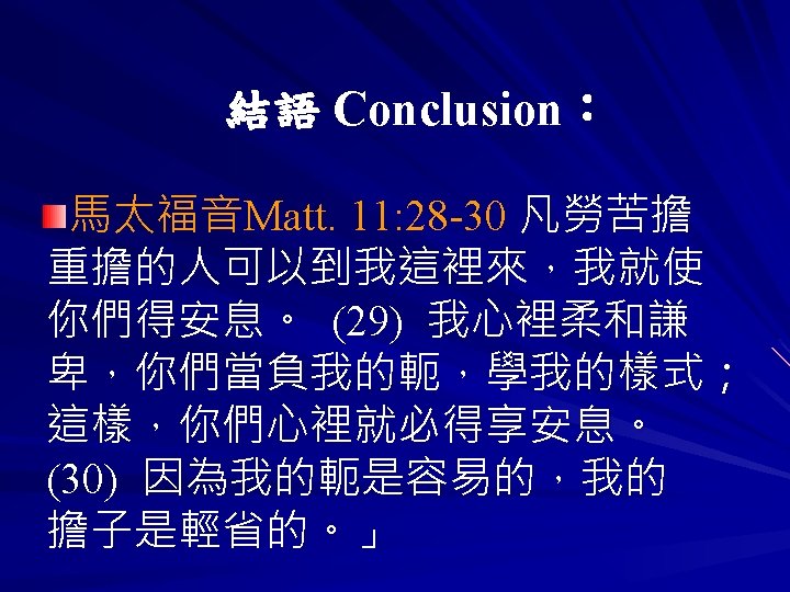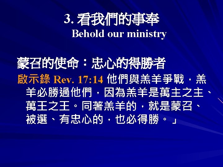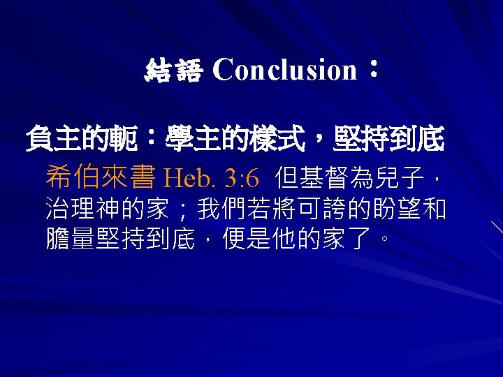 直到主耶穌再來時候 Until Lord Jesus Comes Again 直到主耶穌再來時候 我要走事奉的道路 窄的門 窄的路 背起我的十字架 Until Lord Jesus Comes Again I will walk to way of serving God Narrow door, narrow road, taking along my own cross