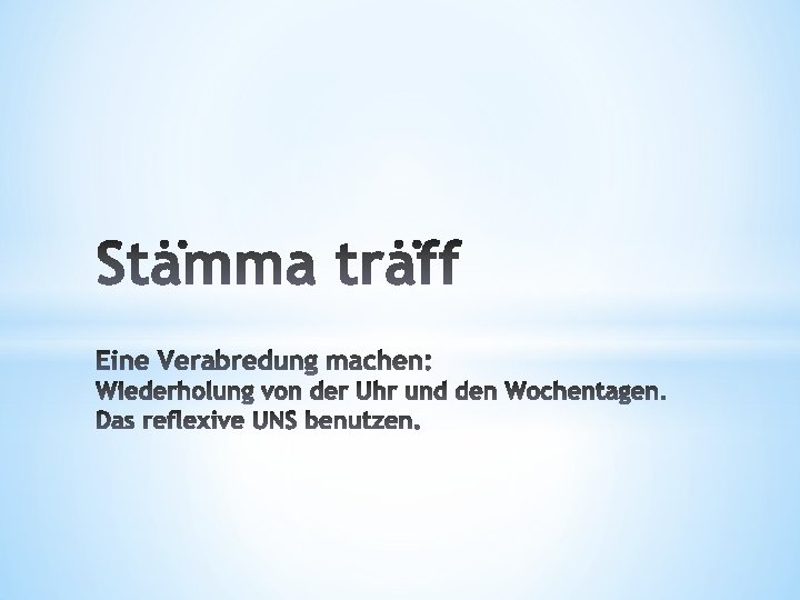 In dem Deutschen sagt man SICH treffen, UNS treffen! (treffen ist ein reflexives Verb) Aber zuerst: *Wie heiβen die Wochentage? *Wie fragt man ”Hur mycket är klockan? ”