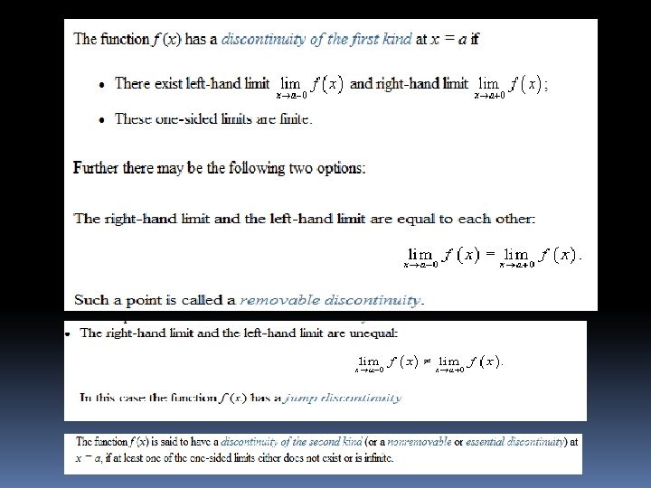 This is the same condition as for continuous functions, except that it is required to hold for x strictly larger than c only. Requiring it instead for all x with c − δ < x < c yields the notion of left-continuous functions. A function is continuous if and only if it is both rightcontinuous and left-continuous.