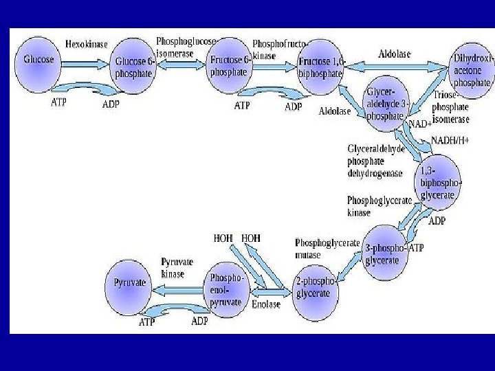 Hexokinase - Mammals have several isozymes of hexokinase that catalyze the phosphorylation of glucose to glucose 6 -phosphate - In most tissues the phosphorylation of glucose is catalyzed by hexokinase, that is one of the three regulatory enzymes of glycolysis. It has a broad specificity and is able to phosphorylate several hexoses in addition to glycosis. - Hexokinase is inhibited by the reaction product, glycose 6 -phosphate, that accumulates when further metabolism of this hexose phosphate is reduced, for example by a high ATP/ADP ratio. - Hexokinase has a high affinity for glucose. This permits efficient phosphorylation and subsequent metabolism of glucose even when tissue concentration of glucose are low.