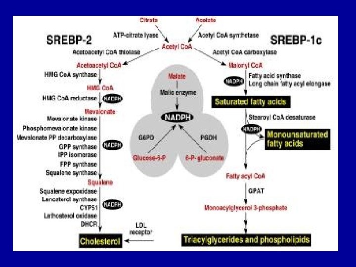 Mechanism of fatty acid acyl-Co. A synthesis - The reductant is NADPH rather than NADH - The extra phosphate does not participate in reduction reactions; it is an identification signal, Allows cell to separate reductive power for energy use for synthetic reactions. - NADPH provides reducing power for FA synthesis. - The amount of NADPH generated is only half that which is required for FA synthesis. - The source of the remainder is from the PPP.