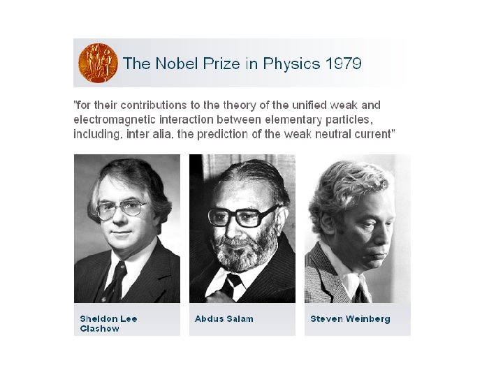 SLAC 1978: Test of Weinberg’s model If parity is violated, oppositely polarized electrons will scatter with different probabilities Ga. As Source Characteristics: • High intensity: up to 5 x 1011 electrons per pulse at 120 Hz • Good polarization: ~ 40% • Fast reversal of polarization The SLAC experiment produced the first observation of parity violation in a neutral current interaction! C. Y. Prescott et. al. , Physics Letters 77 B, 347 (1978); C. Y. Prescott et. al. , Physics Letters 84 B, 524 (1979); Physics Today 9, 17 (1978)