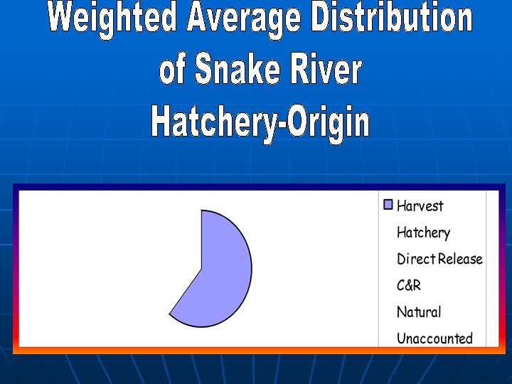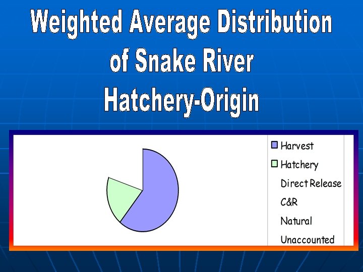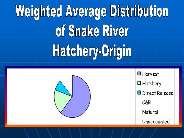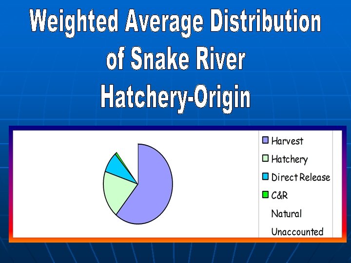 Distribution of Hatchery-origin Steelhead in the Snake River 1995 -2002 Weighted Average Natural Mortality 6. 4% Direct Stream 8. 7% C&R mortality 0. 8% Hatchery Rack 19. 1% Unaccounted 4. 1% Harvest 60. 9%