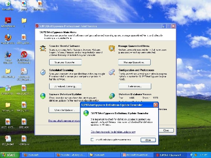 Spyware & Antispyware Type’s Of Spyware • • • Adware, Malware, Stealware Pop-up Identity theft Dialers Cookies DRM - Rootkit
