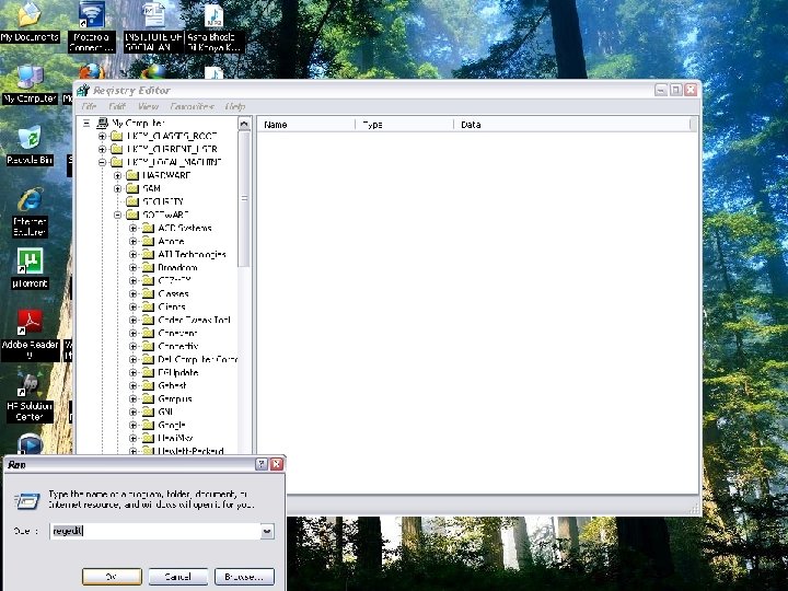 Spyware & Antispyware Regedit • Lets you play with the registry of softwares and hardwares • Now see the Tutorial.