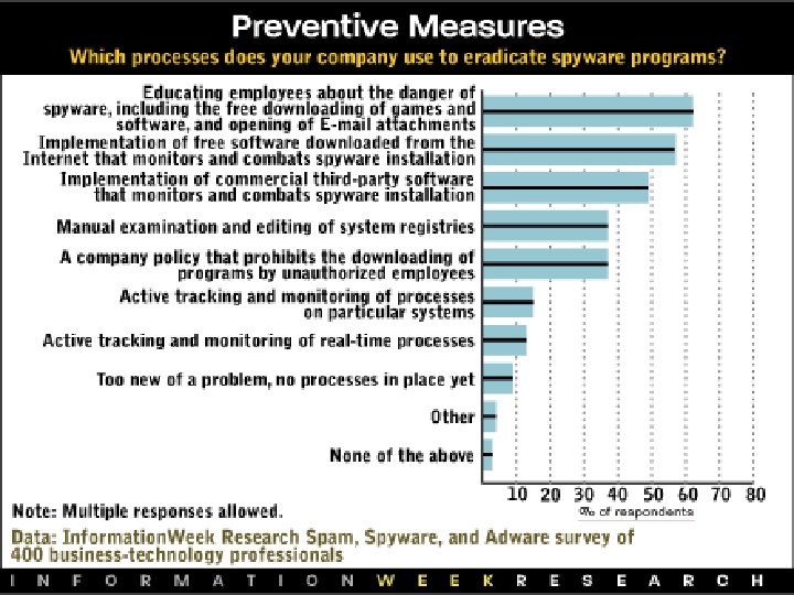 Spyware & Antispyware �October 17 th 1994: Usenet: Making fun at MS business model �Early 2000: First reports of “spyware” - Aureate � 2000: First anti-“spyware” software Opt. Out About 6 known spyware + about 5 possible spyware � January 26 th 2001: Press release: Zone. Alarm Personal Firewall