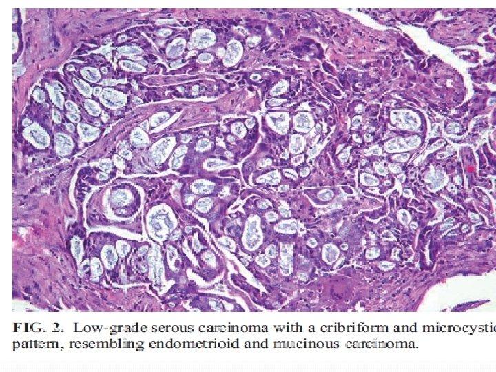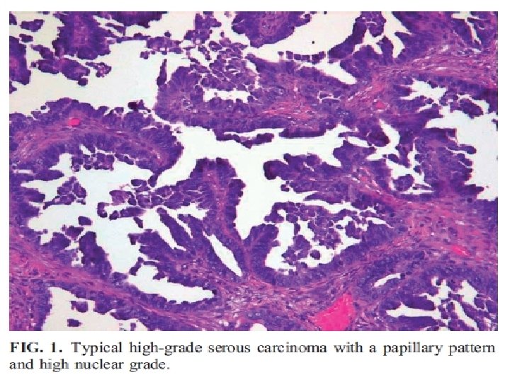 Case report 35 years old G 2 L 2 C/S Last delivery: 93/7/16 At 16 w of last pregnancy complex ovarian cysts were found as an accidental founding There was no treatment untile she was terminated left cystectmy &Right salpangoophorectomy was performed during c/s High grade papillary serous carcinoma