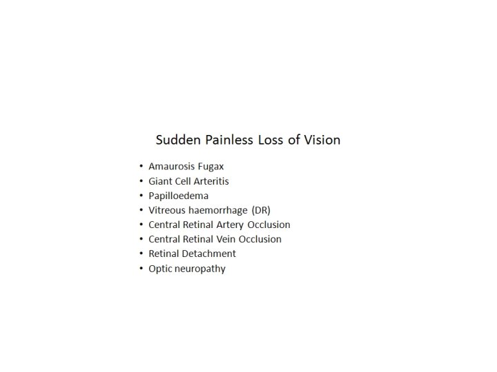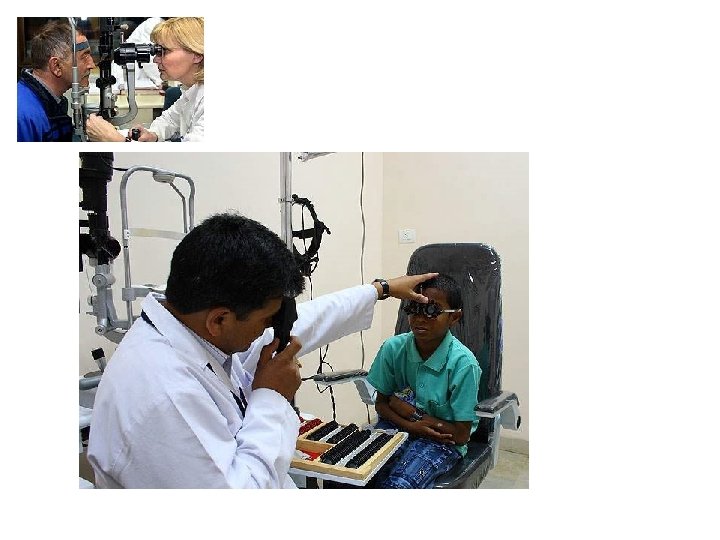 Visual loss: 1. Refractive error: retinoscopy, subjective refraction including the pin hole , autorefraction. (Irregular astigmatism) 2. Opacity of media: ophthalmoscopy, retinoscopy, biomicroscopy. (red reflex) 3. Retina & Optic nerve : ophthalmoscopic observation, RAPD, visual field, ERG, EOG, VEP, angiography, OCT, ultrasonography. (Amblyopia) Amblyopia: history & phsical: Anisometropia, Isoametropia, Strabismic, Deprivation (Monofixation synd) 4 prism base out test Malingering: age, gain, tricks Legal writing