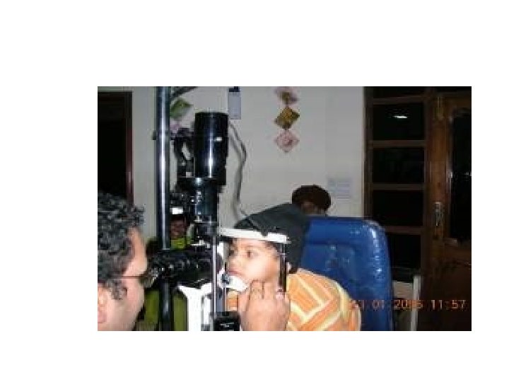 Clinical eye examination History & physical examination Ophthalmic symptoms : pain, redness, itching, burning , F B sensation, Visual loss Snellen Chart Hand Held Acuity Card