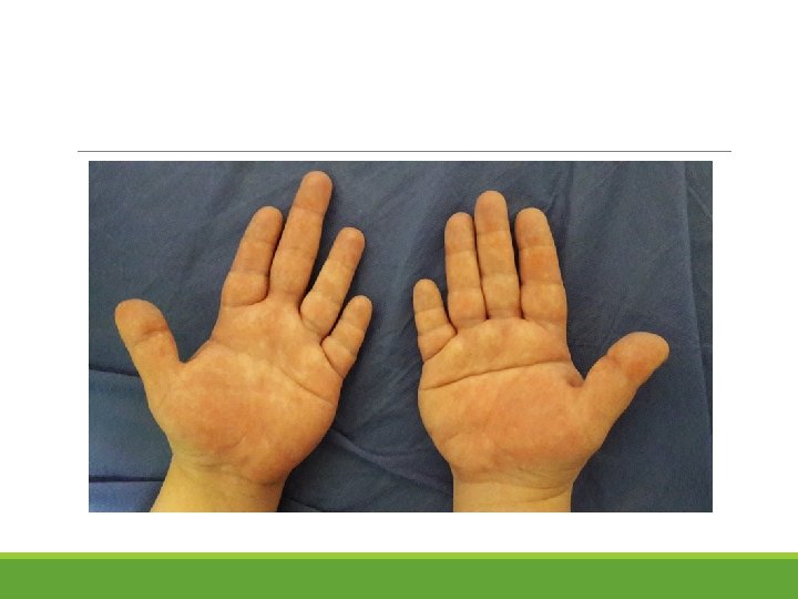 Hand x-ray q. No Sub periosteal bone resorption q 4 th & 5 th metacarpal bones are wide and short q. Short distal phalanx of first digits