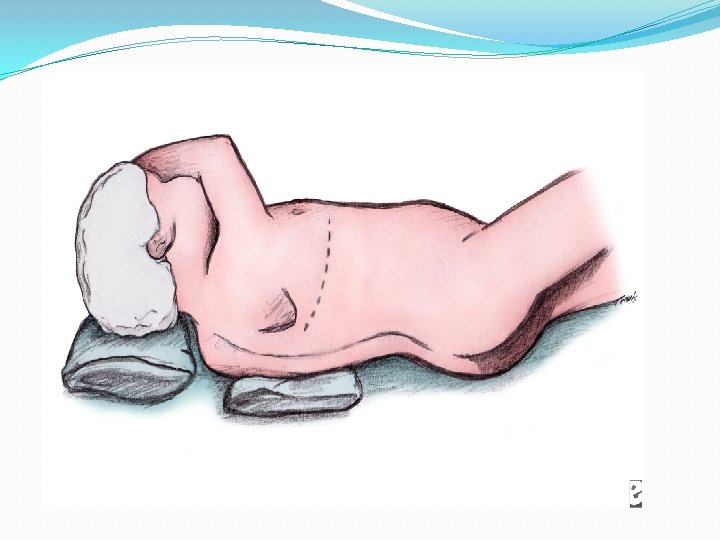 Position �complete lateral decubitus position �use of sandbags, rolled sheets front and back or bean bags supporting the back and the abdomen