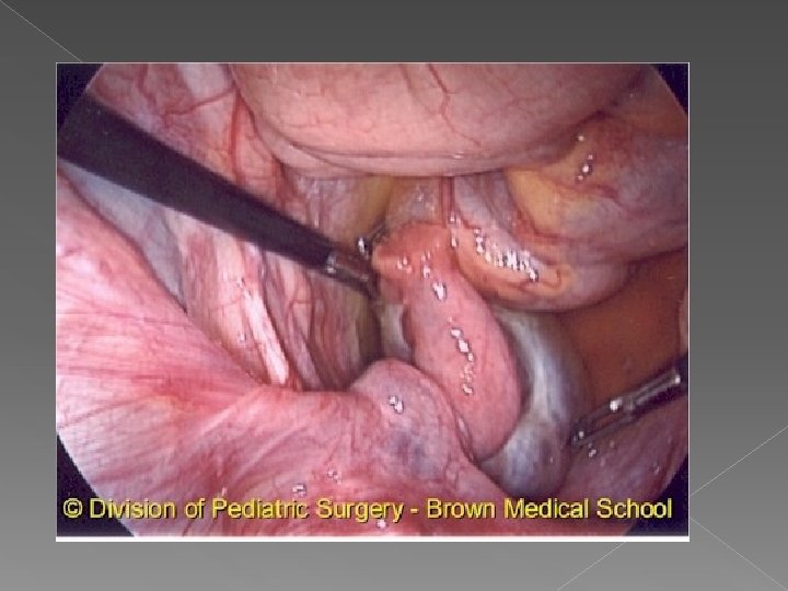 Management and outcome If acute rupture with hemorrhage occurs and bleeding is associated with hemodynamic instability, surgery should be done surgery can usually be performed laparoscopically , A hemoperitoneum is not a contraindication Laparotomy is indicated if the surgeon is not experienced in laparoscopy on children or if the patient is hypotensive In contrast, surgery is always indicated at the time of diagnosis of ovarian torsion for salvage